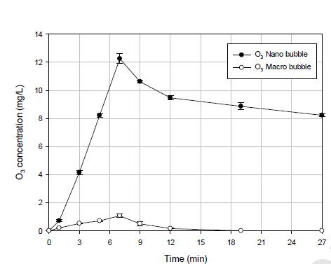 使用納米臭氧時,氣體傳質和臭氧氣體的半衰期增加了
