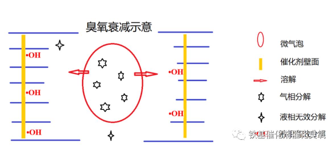 “催化劑填料”這一名詞,在化工行業有見,但不常用。催化劑的功能是加速反應,屬化學學科概念;填料的功能是為傳質和反應提供場所,屬化工學科概念。在催化臭氧化過程中, •OH產生于臭氧在催化劑表面的分解,因此填料性質很重要;更為關鍵的是:•OH壽命只有納秒級,不可能行程很遠去攻擊有機物分子,就是說:由催化劑界面構成、水可流動的孔隙孔徑須很小,因此比一般化工填料要求更高;故在工藝中應強調催化劑填料。這一問題,我們在《中國給水排水》期刊上發表文章做過探討。