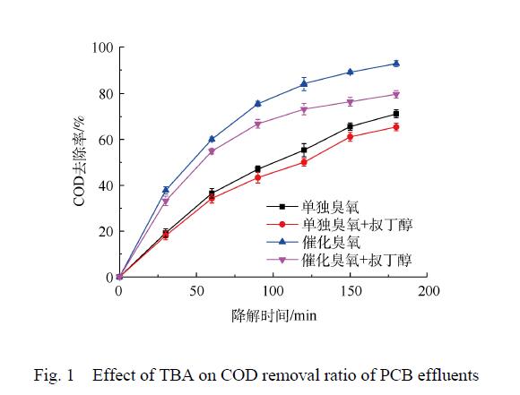 圖 1    TBA對PCB廢液降解率的影響