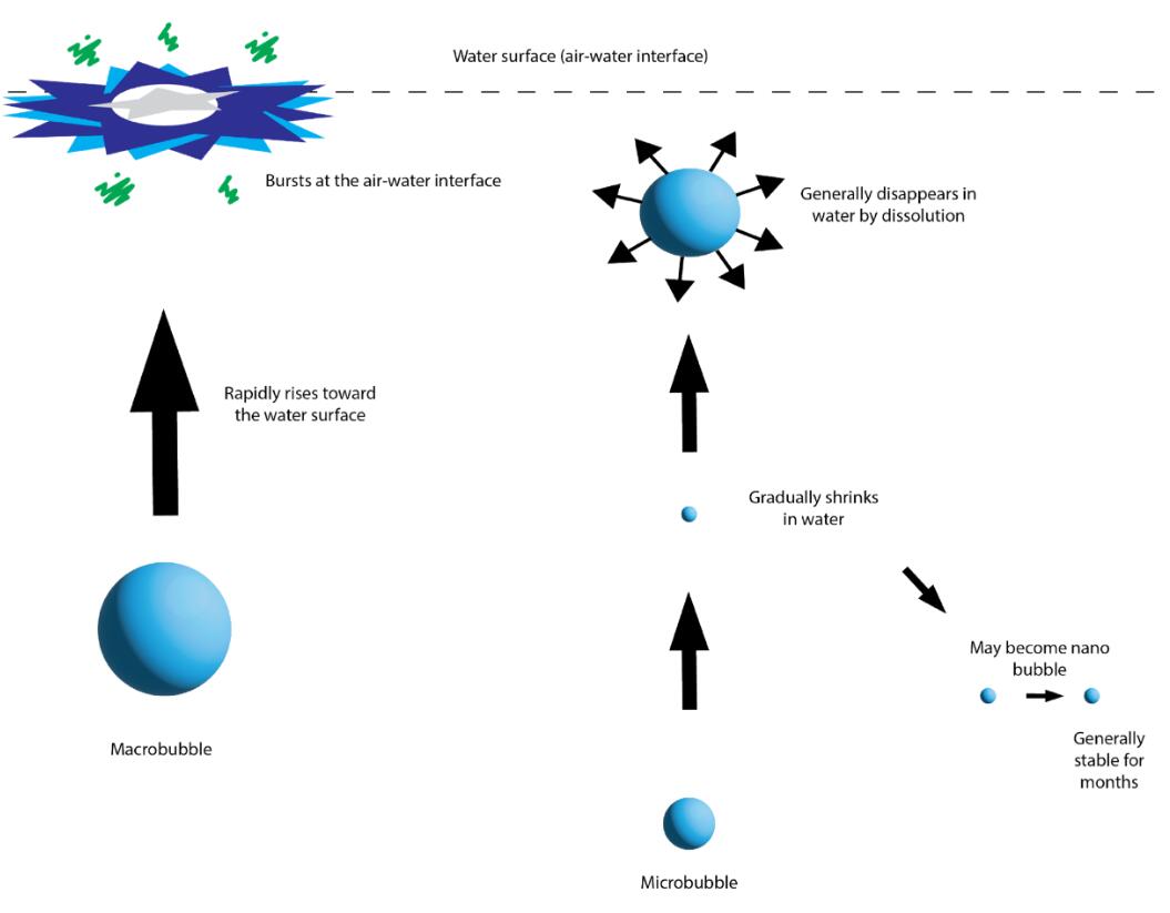 納米氣泡的定義是它們?cè)谒械莫?dú)特性質(zhì)。這些獨(dú)特的特性可能有助于將臭氧/氧氣溶解到某些水中。此外,臭氧因自然半衰期衰變而恢復(fù)為氧氣后,剩余的氧納米氣泡可能會(huì)繼續(xù)溶解在水中,并長時(shí)間氧化水中的化合物。有報(bào)道稱納米氣泡在水中停留數(shù)周。