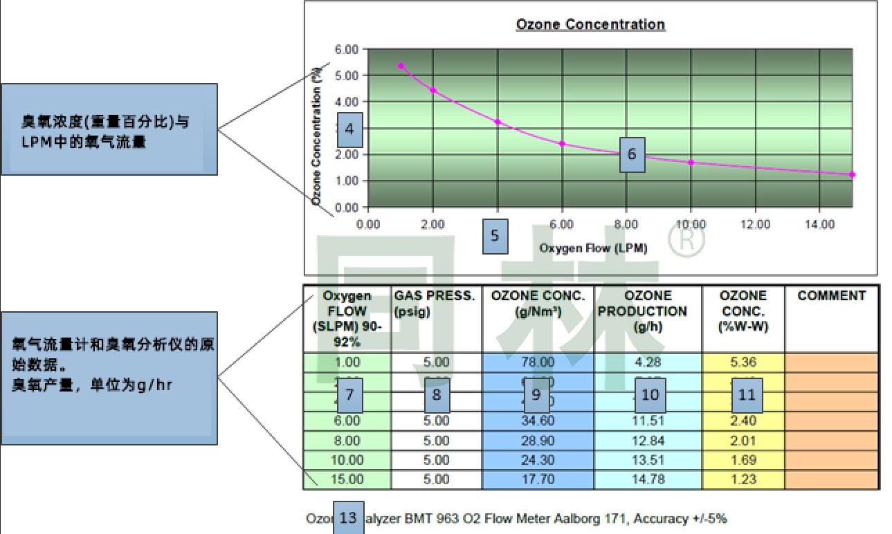 下面的圖表是臭氧發(fā)生器性能圖表的一個例子。